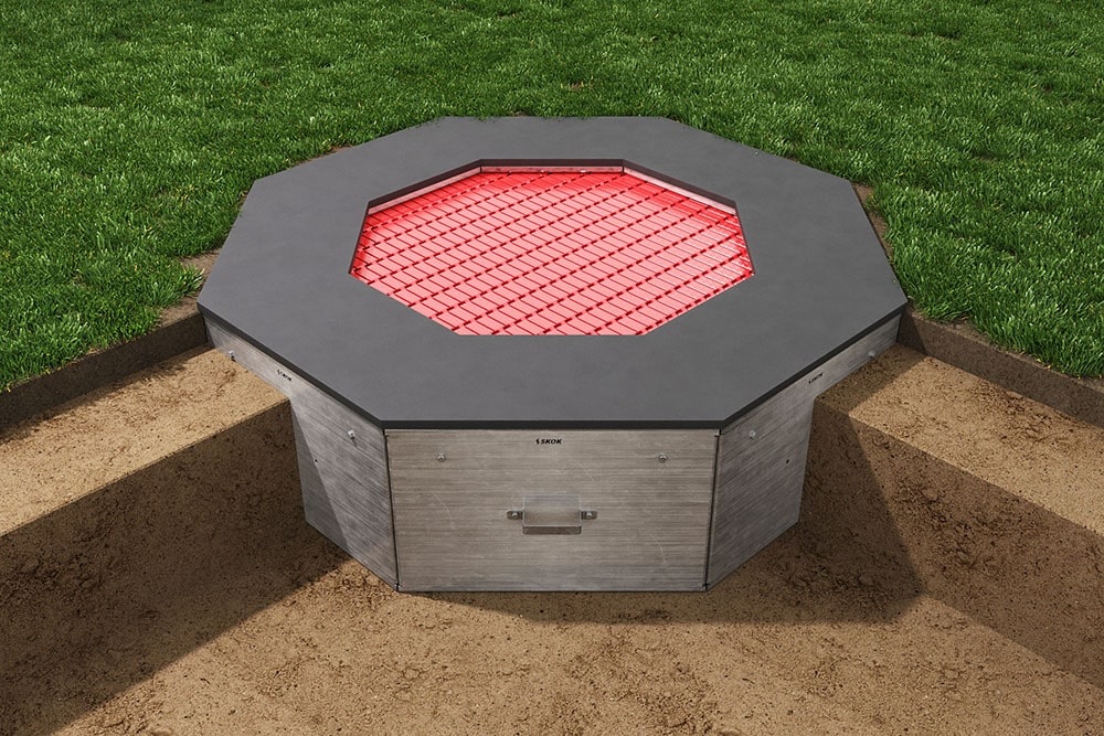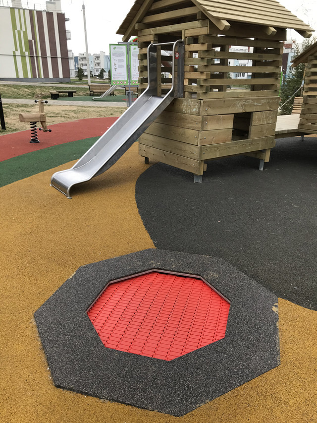 Батут Восьмиугольник – Обычно устанавливается на территории детских садов, отелей и дворов. Часто используется в связках батутов или отдельно. Необычная форма и большая прыжковая поверхность.