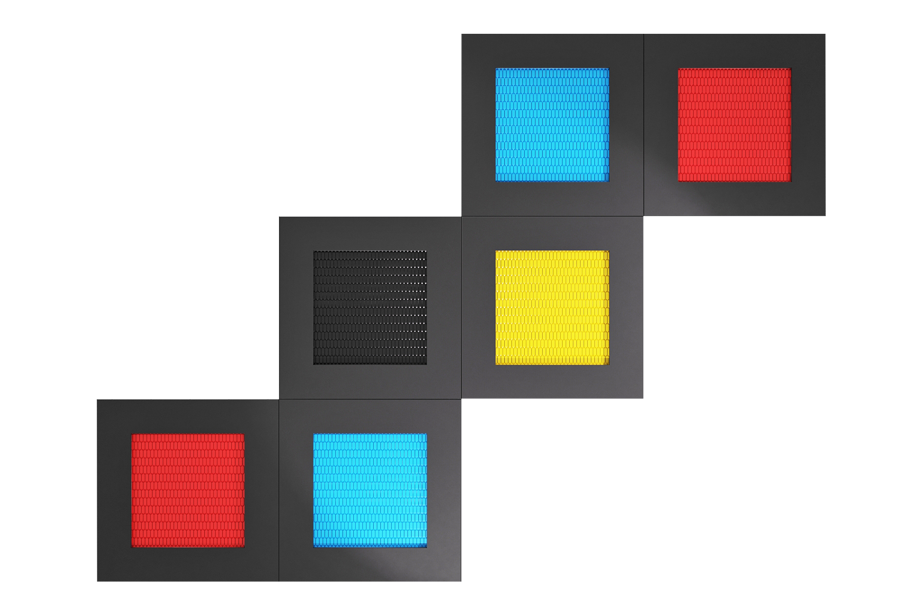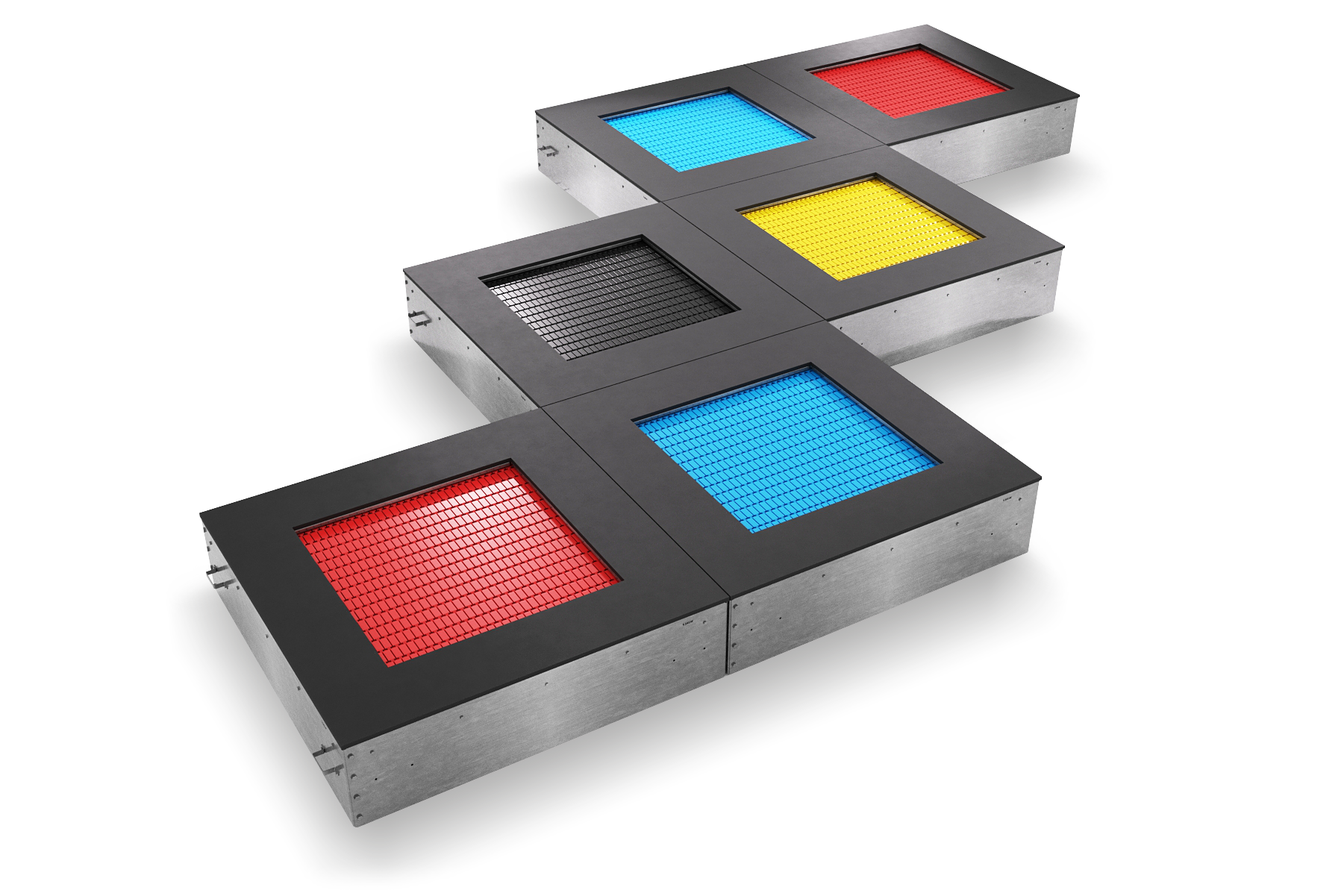 Набор встраиваемых батутов "Змейка" состоит из шести батутов Квадрат 160. На такой комплектации одновременно могут прыгать до 6х человек. Все шесть встраиваемых батутов могут быть выполнены в 5 различных цветах: с зеленым, красным, черным, синим или желтым прыжковым полотном. Набор подходит для использования на детских площадках, парках, улицах и бульварах.