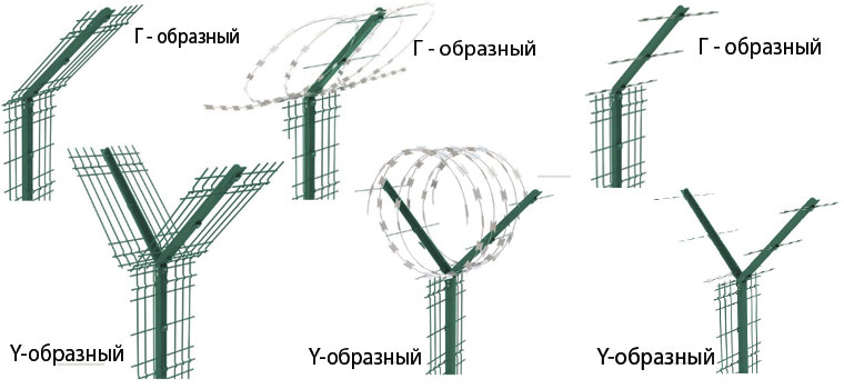 Предлагаемые наконечники изготовлены из листовой стали (S=2 мм), оцинкованы с полимерным покрытием, цвет зеленый RAL 6005. В наконечниках вмонтированы резьбовые втулки для крепления панелей (козырькового заграждения), 6-ти рядов колючей проволоки, ПББ, СББ и других дополнительных средств безопасности.